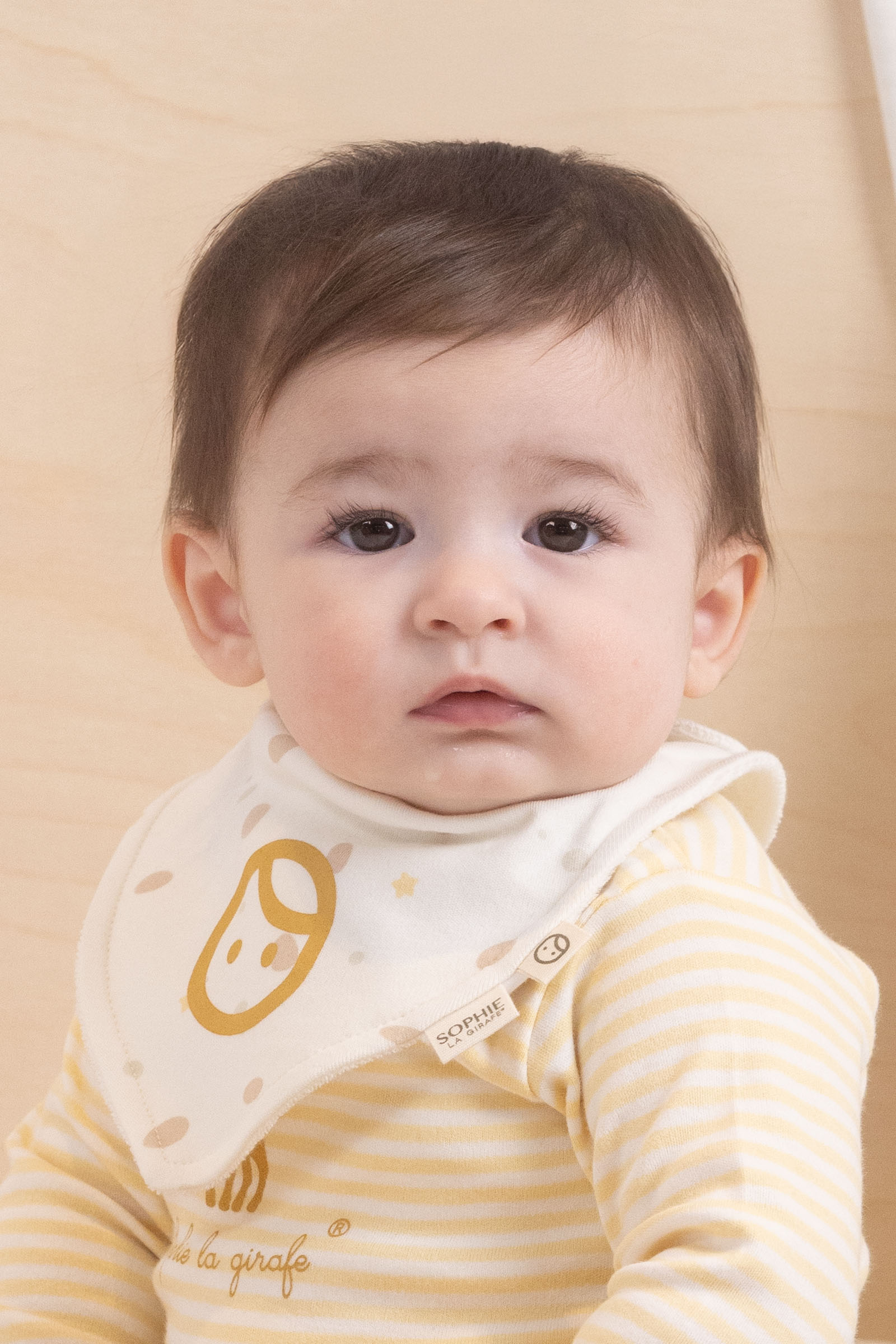 • Sophie la girafe x Little Gusto iş birliğiyle tasarlanan Sophie la girafe fular önlük seti, %100 organik pamuktan üretilir.