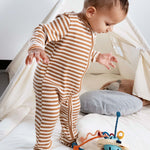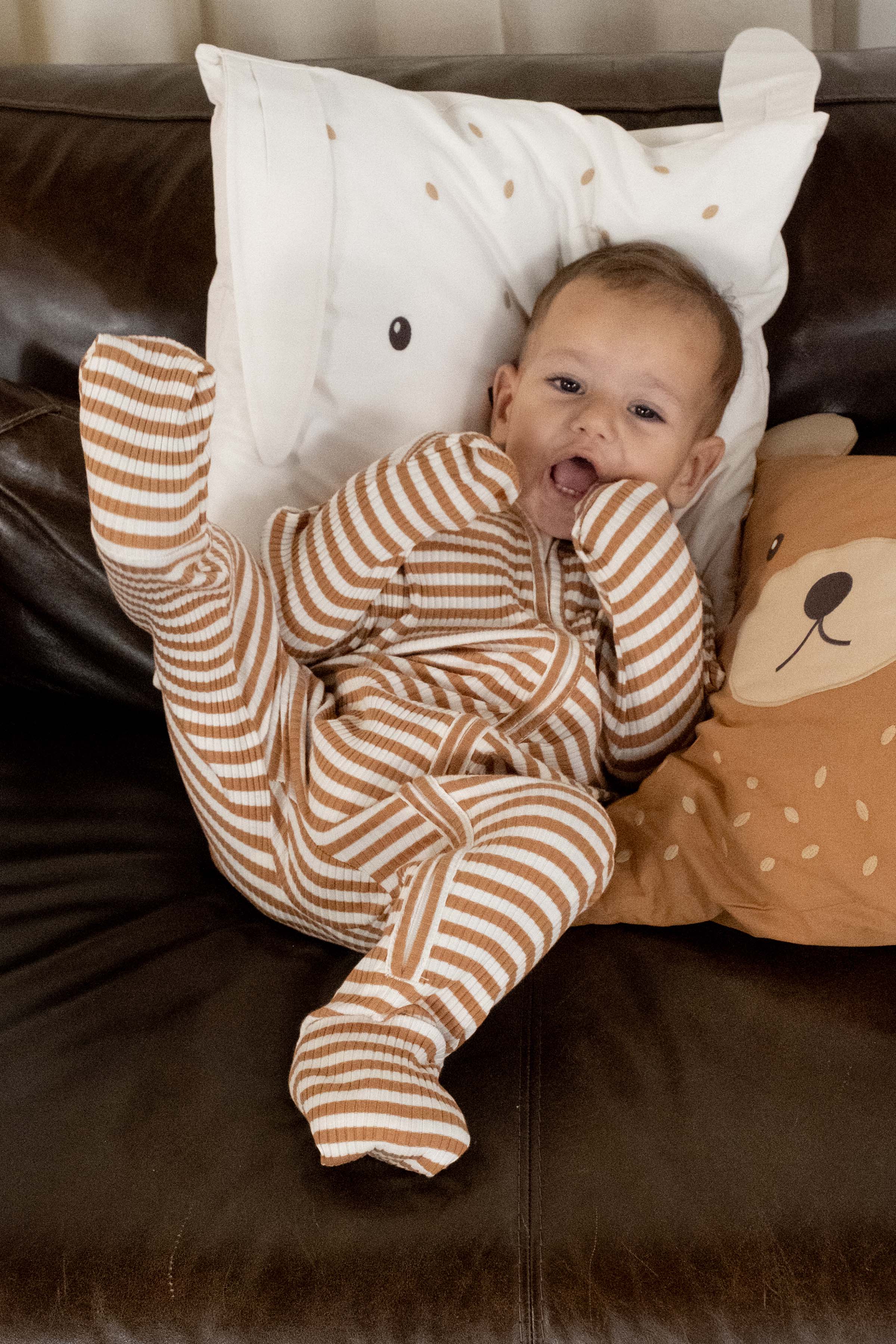 Little Gusto modal kaşkorse organik pamuklu bebek tulumu, kayın ağacının doğallığından gelen modal kumaşın yumuşacık dokusuyla gün boyu konfor sunar ve esnek yapısıyla hassas cilde uyum sağlar. Minik ellerini koruyan eldivenleri, ihtiyaç duyduğunuzda içe kıvrılıp özgürce keşfetmesine izin verir. Patikleri, ayaklarını sıcacık sarar; dilediğinizde patiksiz hâle gelir ve rahat adımlarına eşlik eder. Çene korumalı fermuarı, hassas cildi fermuardan kaynaklı tahrişten korur ve giydirme ve çıkarma anlarını hem güvenli hem de pratik hâle getirir.