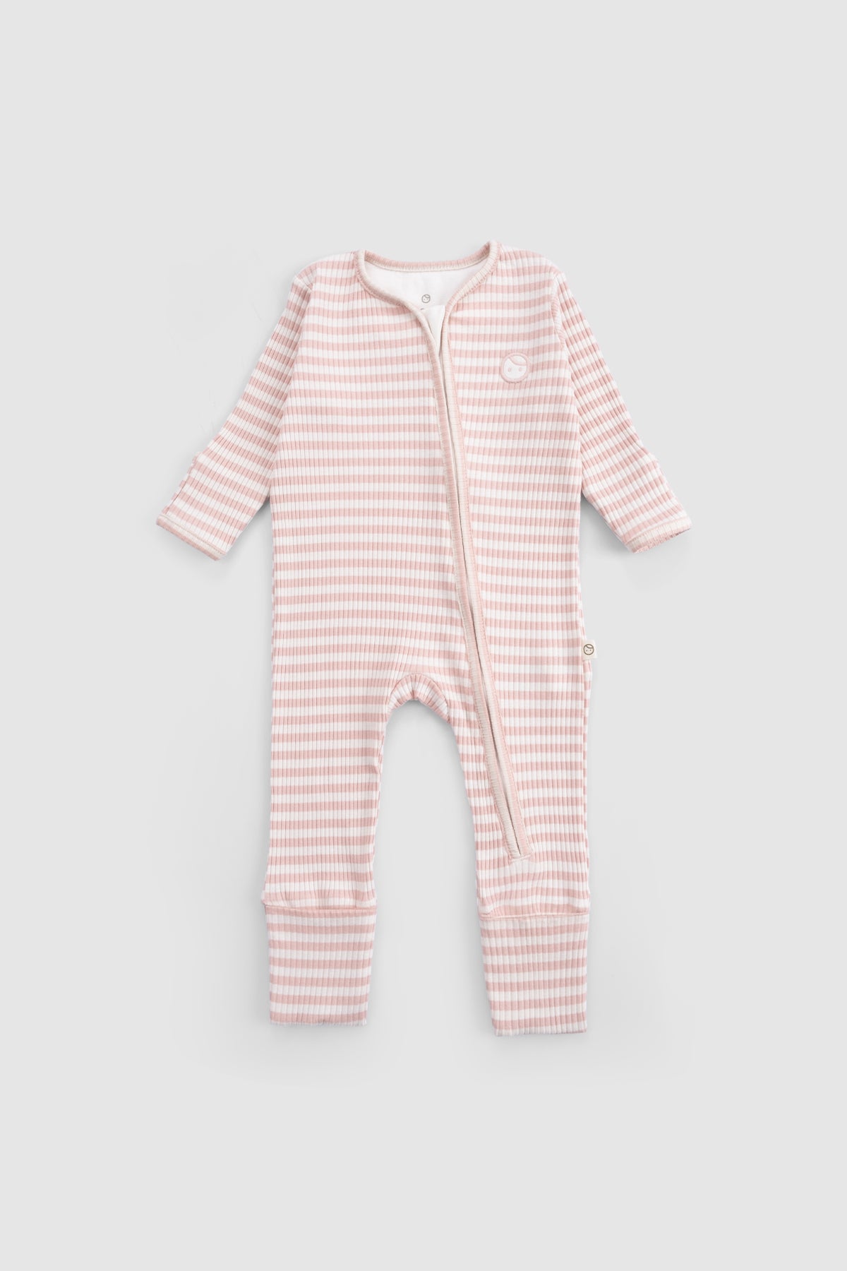 Organik Pamuklu İçi Tüylü Pembe Fermuarlı Bebek Tulumu