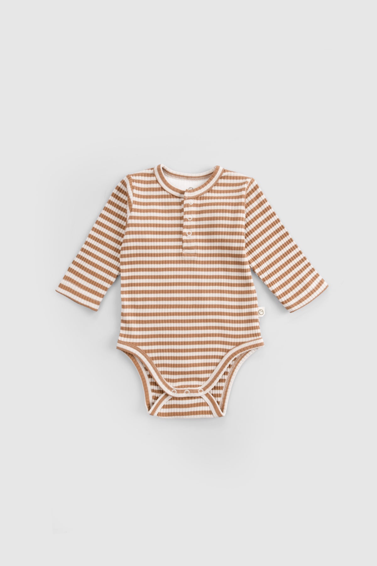 Ayarlanabilir Çıtçıtlı Modal Bebek Body Uzun Kollu Kahverengi Zıbın