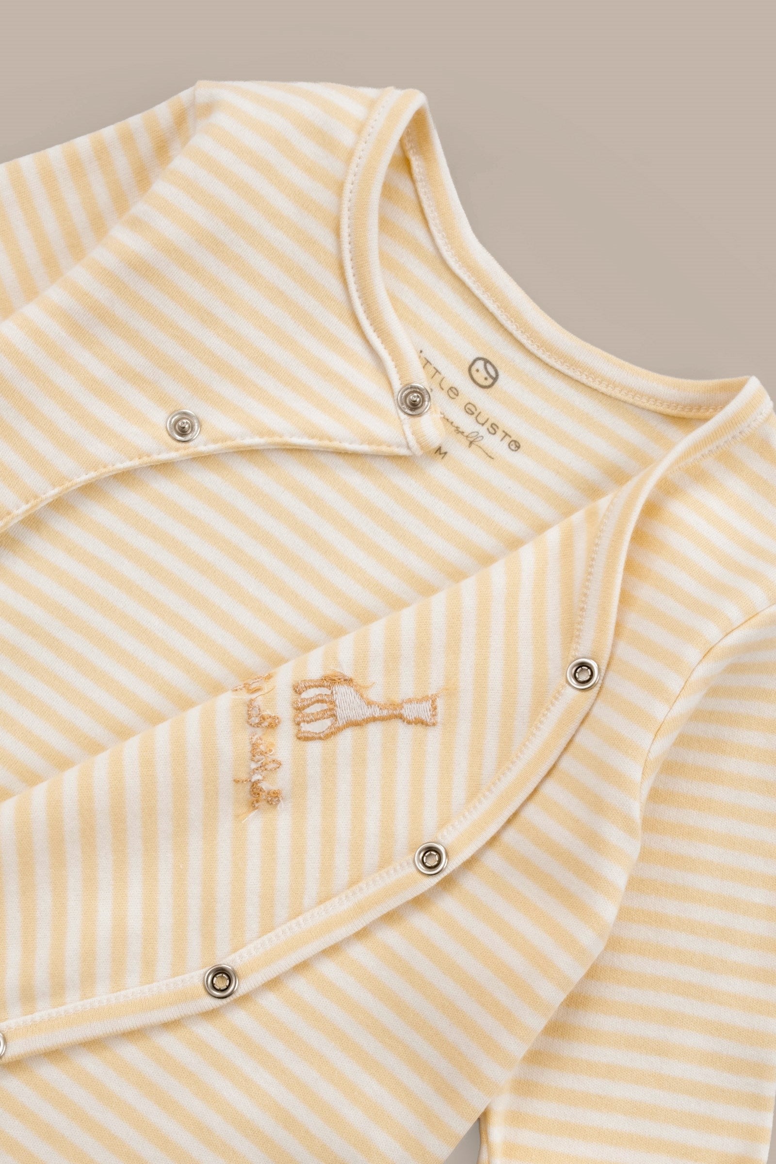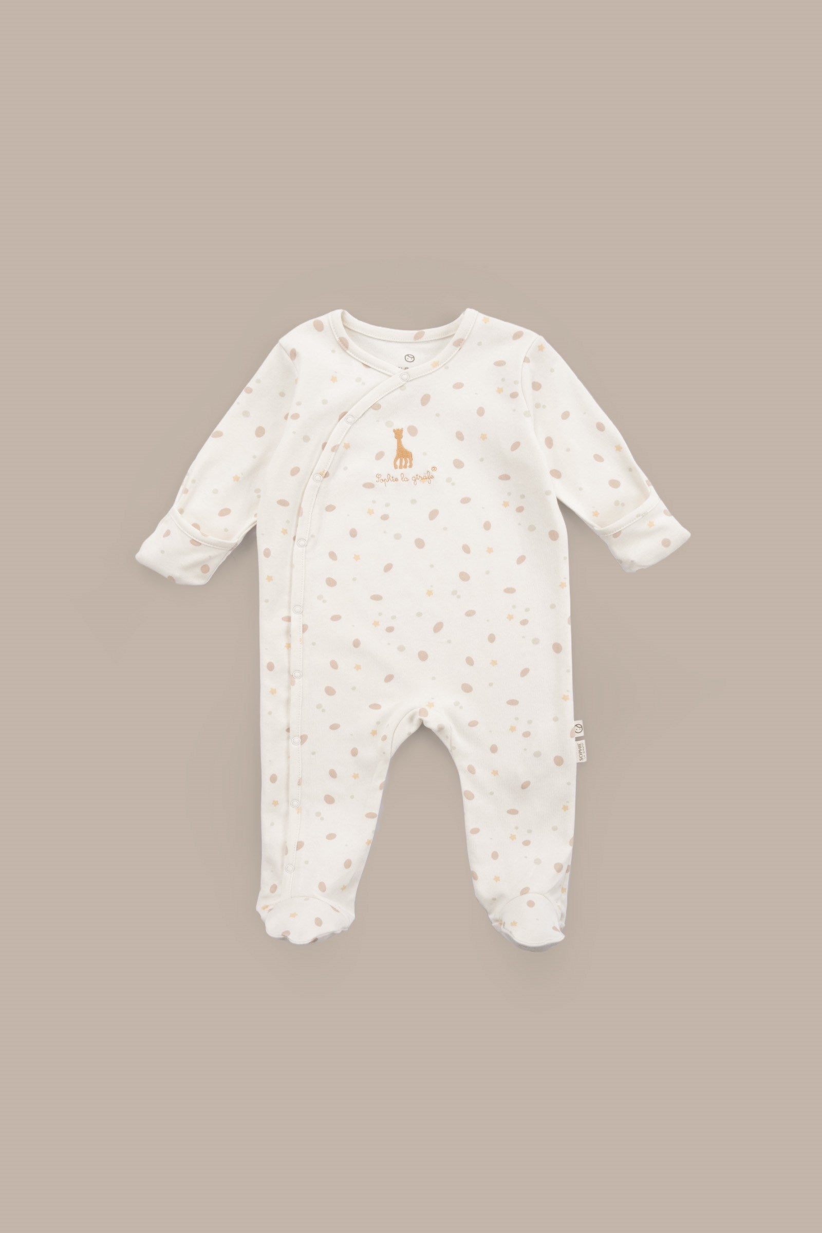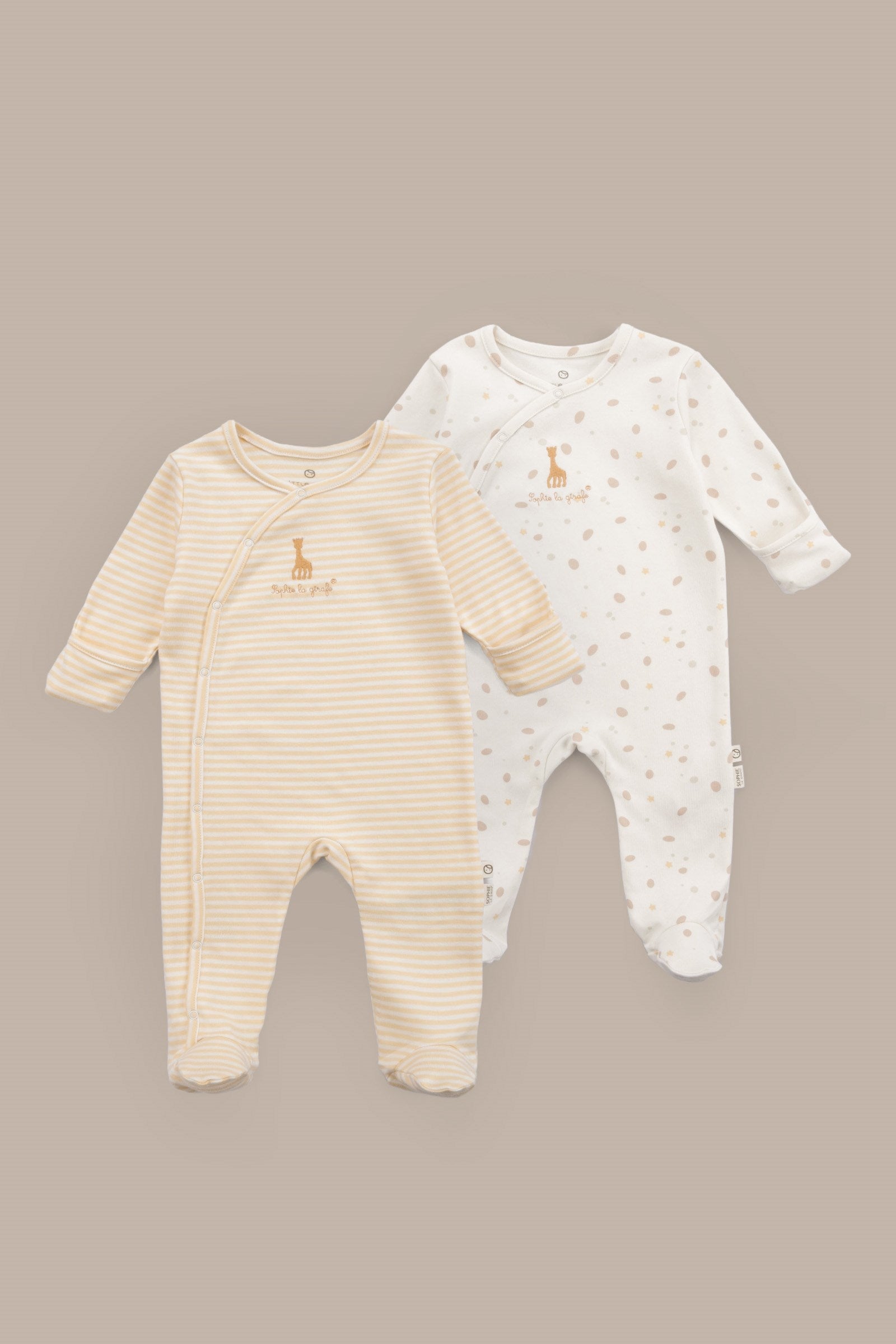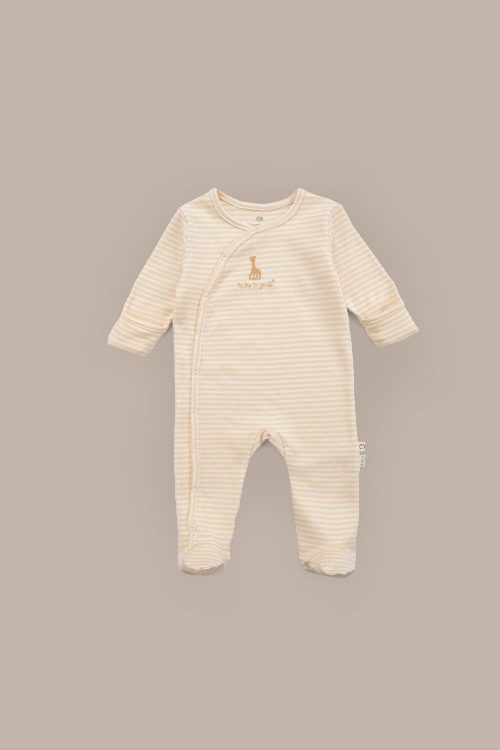 • Little Gusto sarı ekru tulum seti, Sophie la girafe tarafından lisanslanmıştır.
