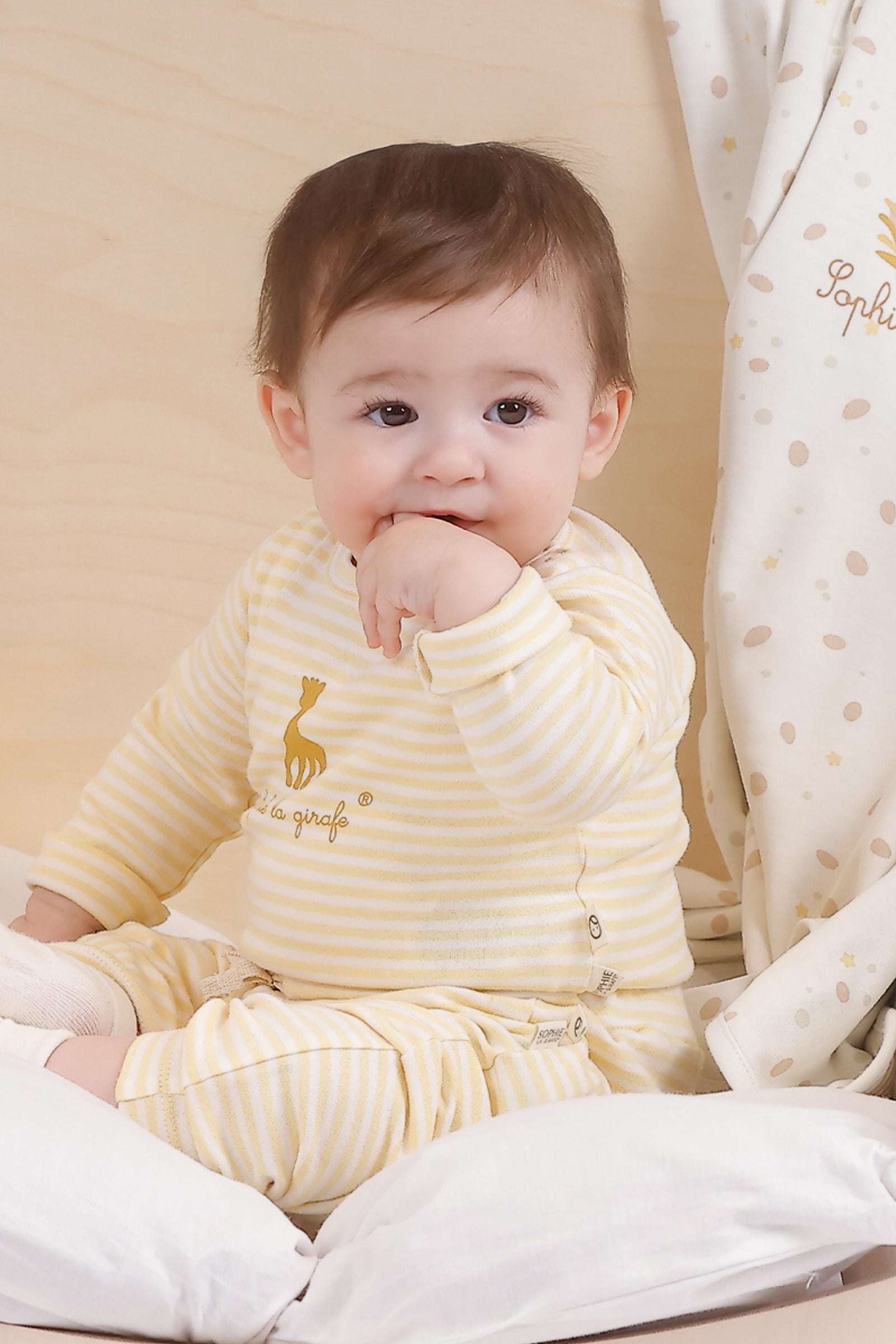• %100 organik pamuk 2’li uzun kollu zıbın Sophie la girafe baskılıdır.