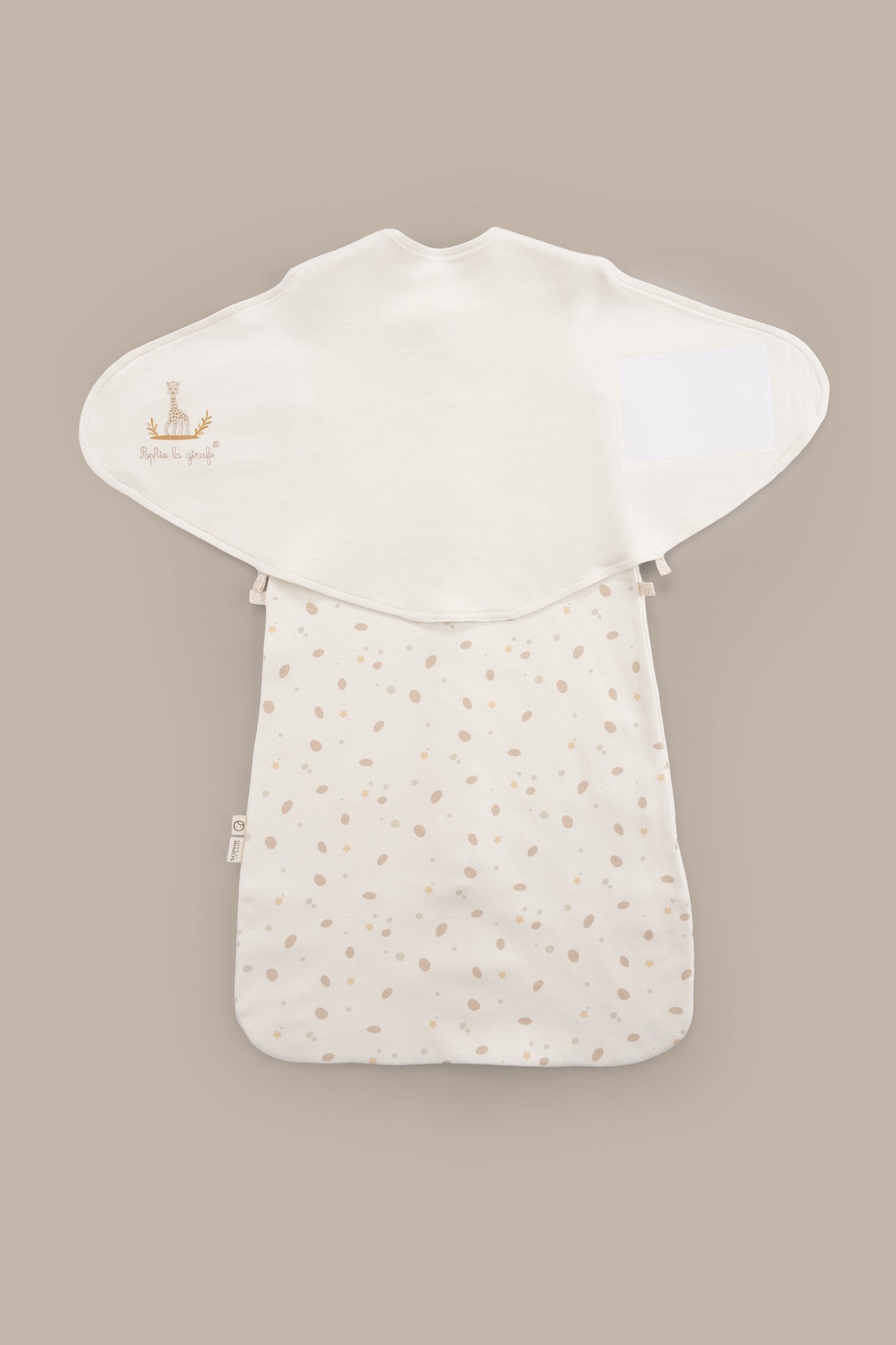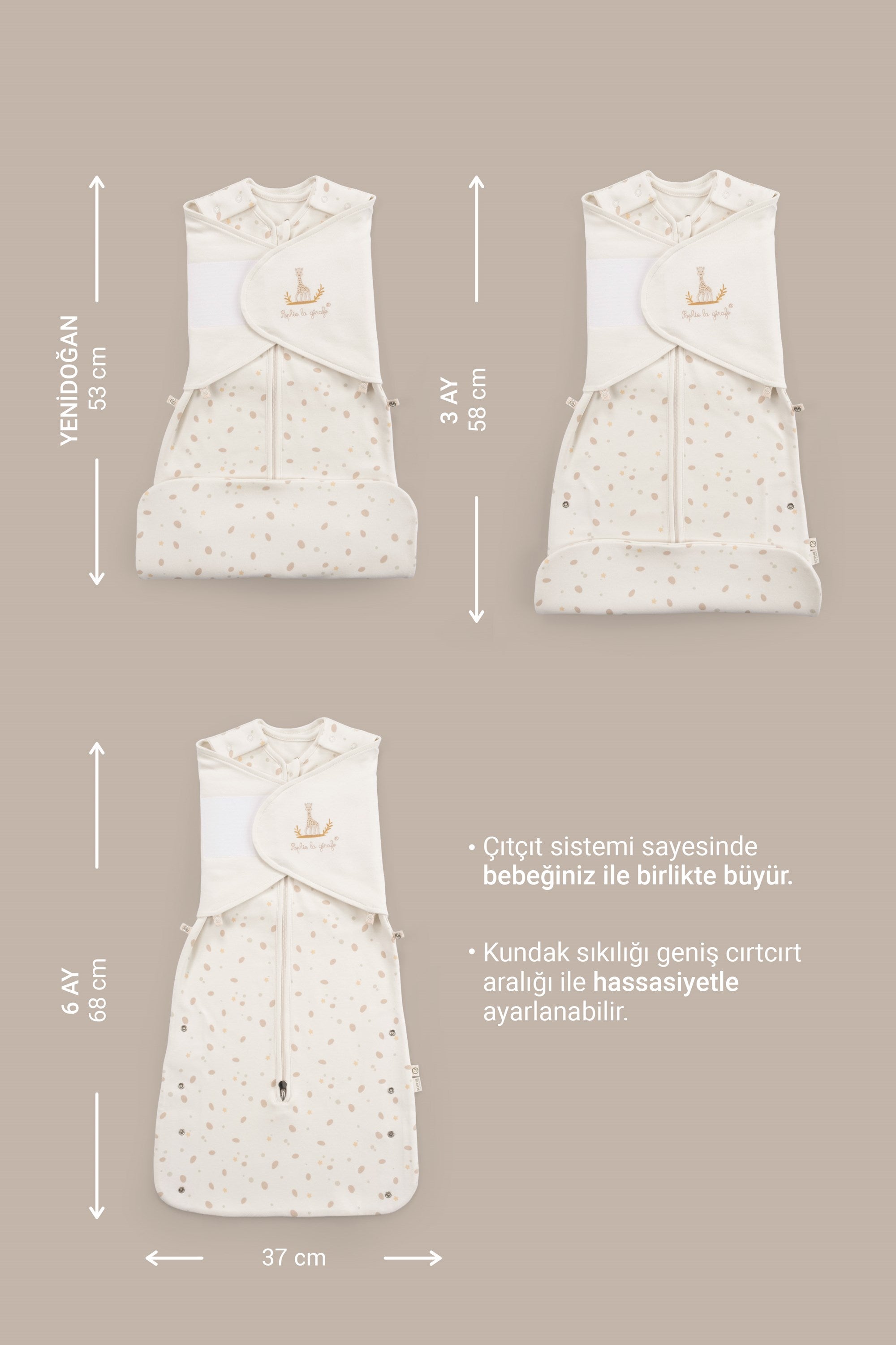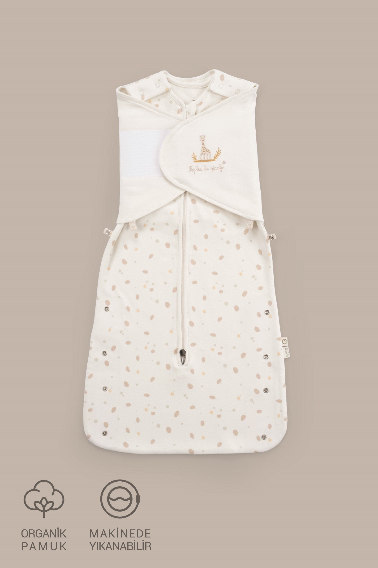 • %100 organik pamuk pelerin uyku tulumu Sophie la girafe nakışlı ve baskılıdır.