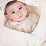 • Sophie la girafe x Little Gusto iş birliğiyle tasarlanan hastane çıkış kundağı %100 organik pamuktan üretilir.
