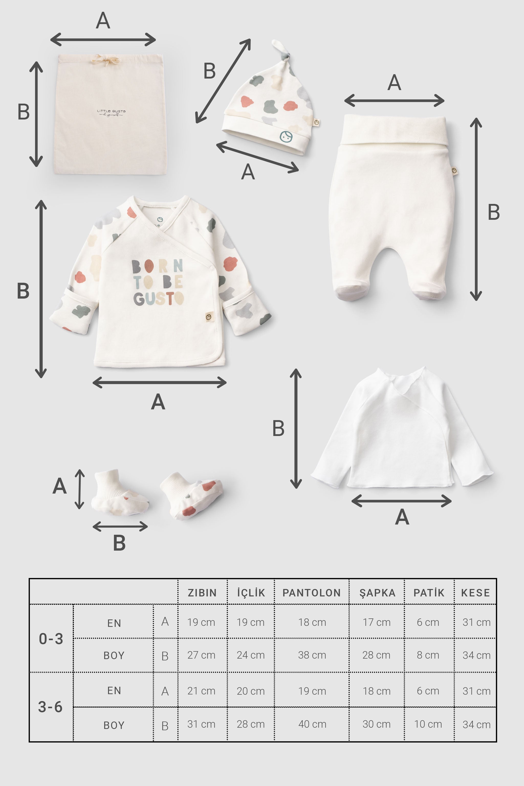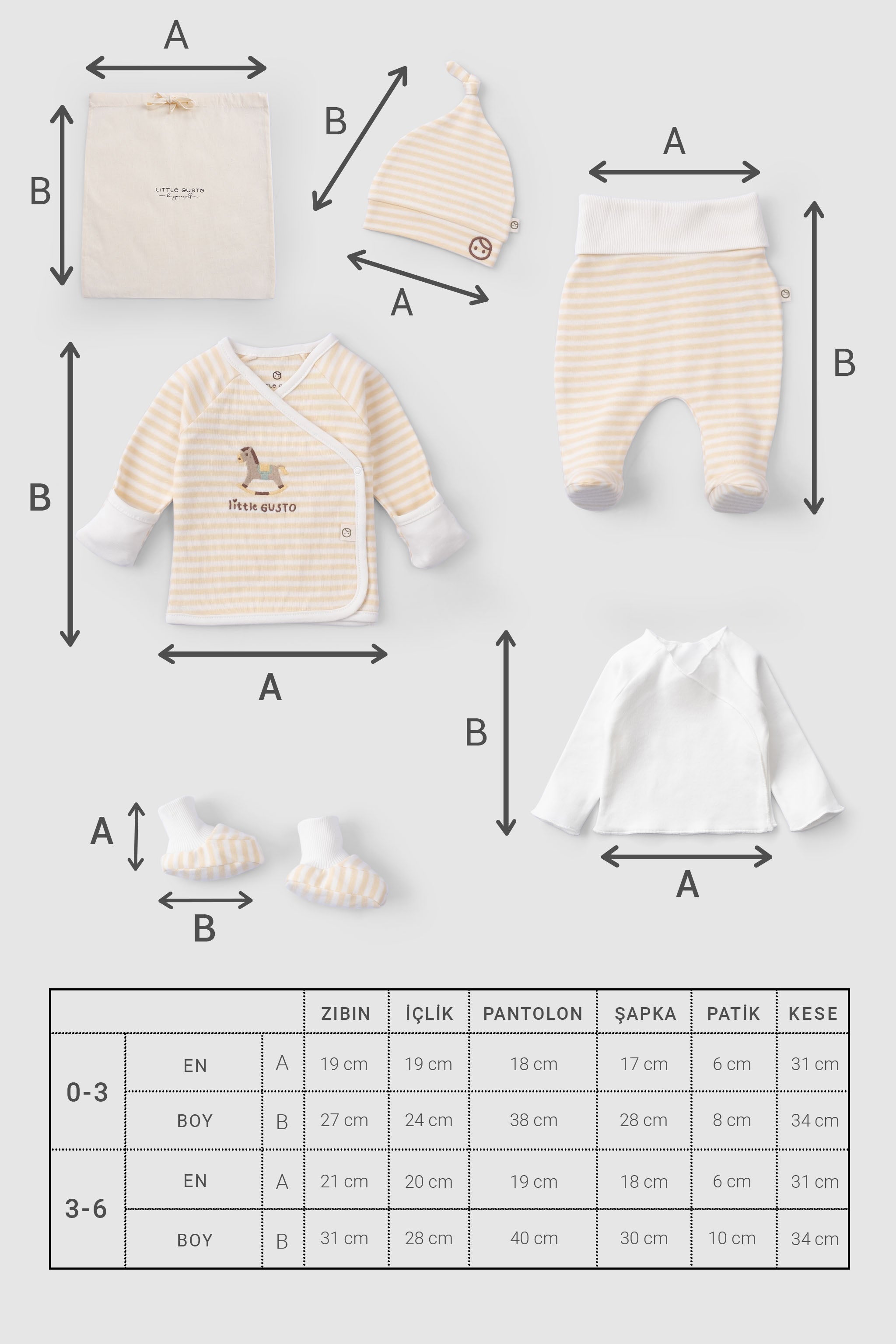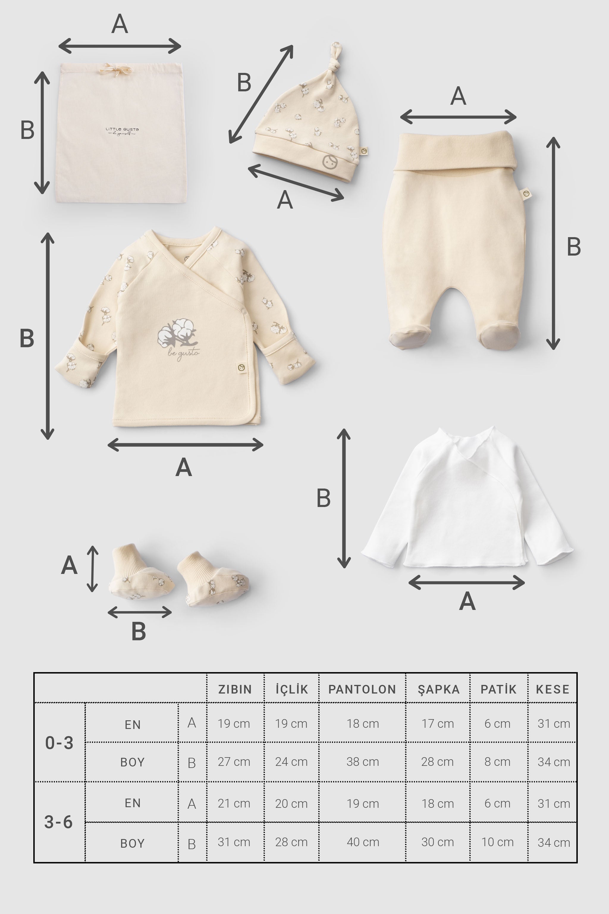 Bebek hastane çıkışı takımları, miniklerin hassas cildine uygun, nefes alabilen ve doğal materyallerden üretilmiş olmalıdır. Little Gusto imzası taşıyan her bir ürün, bebeğinizin ilk günlerinde ihtiyaç duyacağı rahatlığı ve sıcaklığı sağlamak üzere tasarlanmıştır. Yenidoğan bebek hastane çıkış seti içinde yer alan parçalar, bebeğinizin hastane ortamında ve eve dönüş yolculuğunda kendini güvende hissetmesini sağlar. Yumuşacık dokular, pratik tasarımlar ve zamansız şıklık Little Gusto'nun bebekler için hastane çıkışı takımlarının temel özellikleridir. Bu özel anlar için hazırlanan koleksiyonumuzda, bebeğinizin ilk gardırobunun temelini oluşturacak her detay düşünülmüştür.