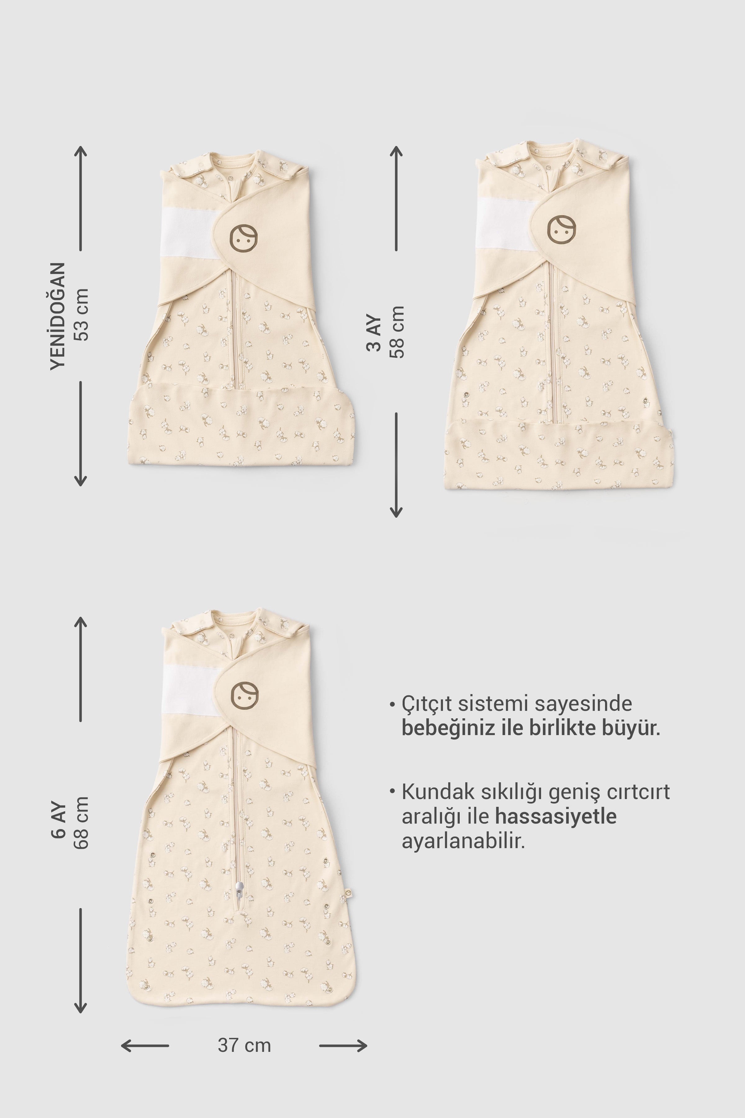 Bebeğinizin uyku saatlerinde güvenliğini ve konforunu sağlamak için ideal bir seçenek olan uyku tulumu, organik pamuklu kumaşı ile rahatlık sunar. Yumuşak dokusu ve nefes alabilir yapısı, bebeğinizin cildine dosttur. Çıtçıtlar veya fermuarlar sayesinde kolayca giydirilebilir ve uzun süre kullanılabilir.