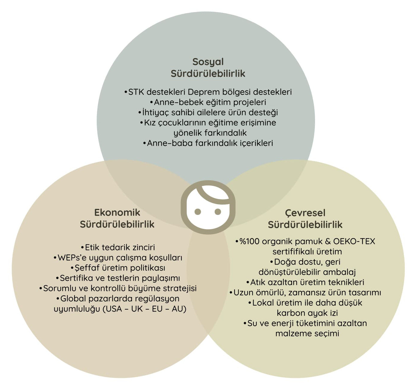 Çevreye duyarlı üretim yaklaşımı, uzun vadeli ekonomik dengeyi gözeten iş modeli ve toplum yararını önceleyen sosyal çalışmalar; Little Gusto’nun sürdürülebilir değer üretme vizyonunu tamamlayan temel alanları oluşturur. Bu bütüncül yaklaşım, markanın geleceğe yönelik sorumluluk anlayışını güçlendiren kurumsal bir çerçeve sunar.