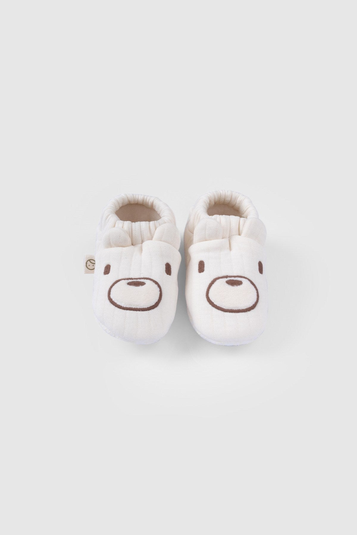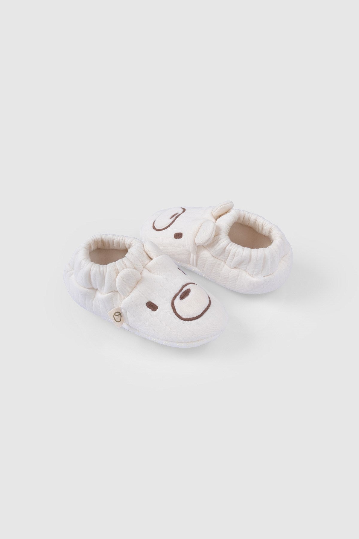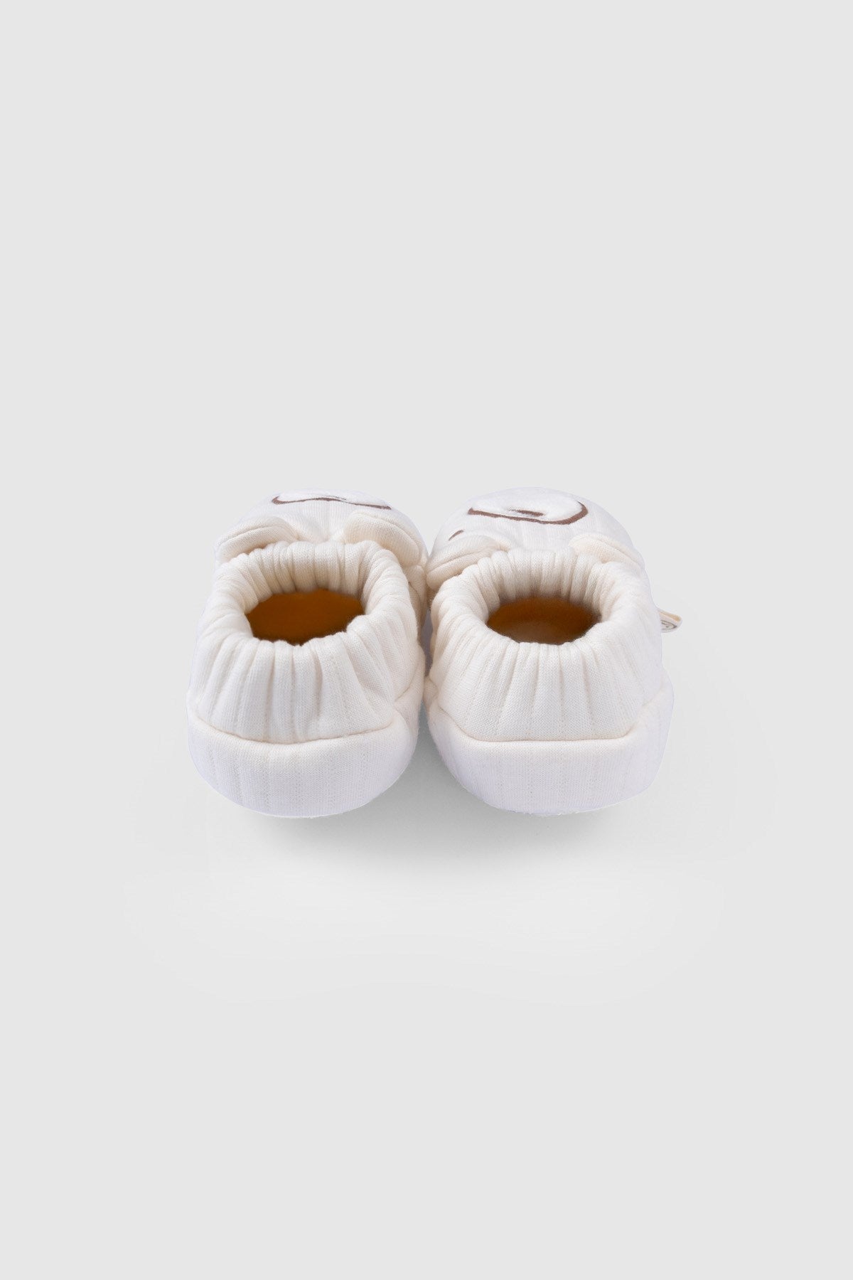 Kapitone Ayıcık Nakışlı Bebek Ekru Patik