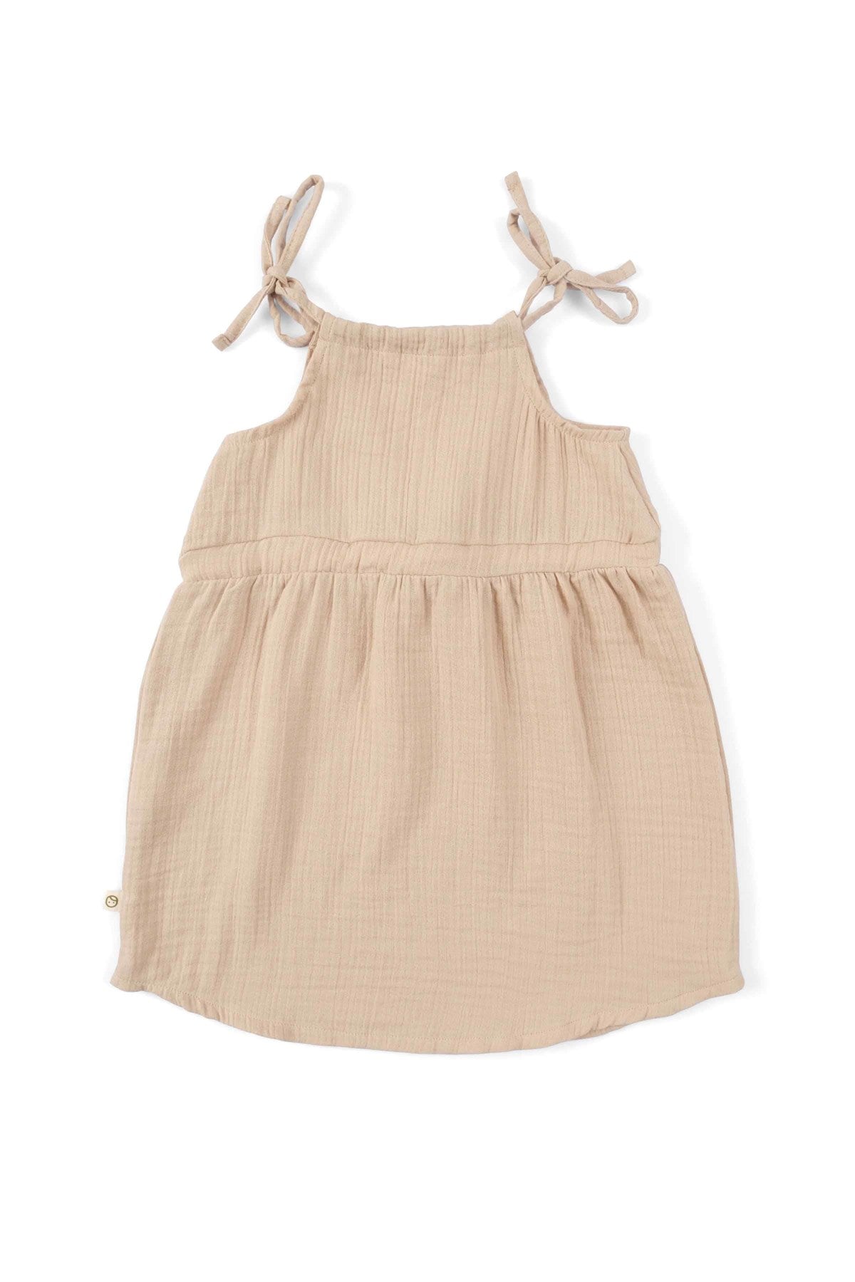 %100 organik pamuk müslin kumaştan üretilen çocuk elbisesi, nefes alan yapısıyla terletmez ve kimyasal madde içermez. Geniş kalıbı ve bel büzgüsü sayesinde uzun yıllar çocuğunuza giydirebileceğiniz bir üründür. Hassas ciltlere özel olarak üretilmiştir.