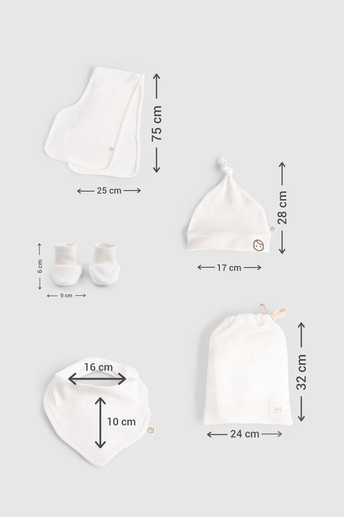 Organik Pamuk 10'lu Ekru Hastane Çıkış Seti
