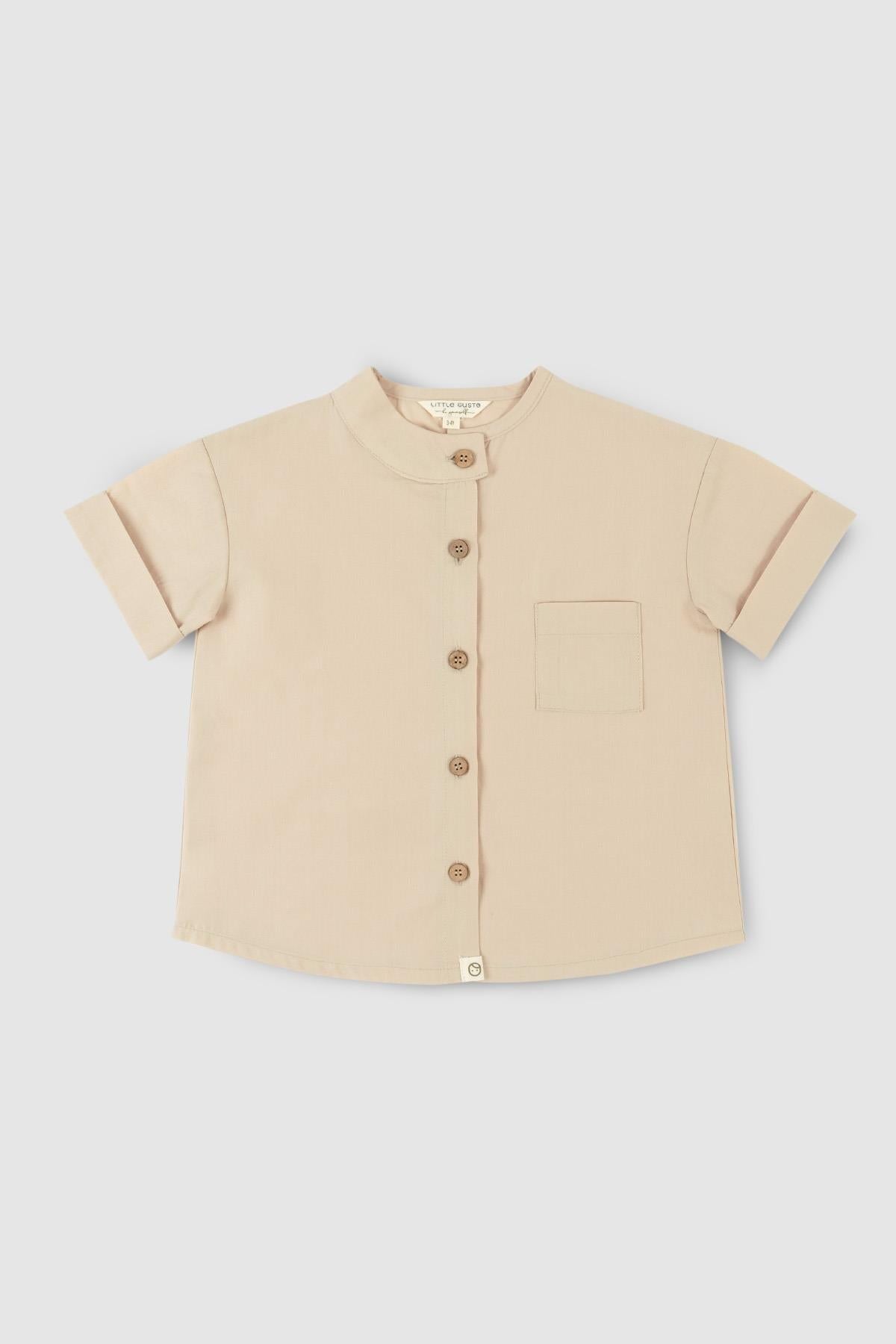 Organik Pamuk Kısa Kollu Çocuk Gömlek Bej Organik Pamuk