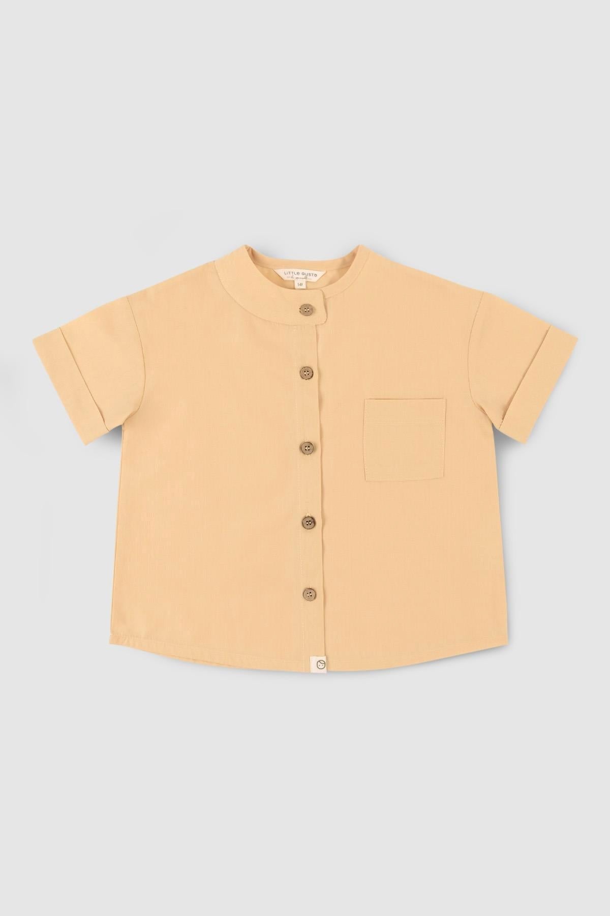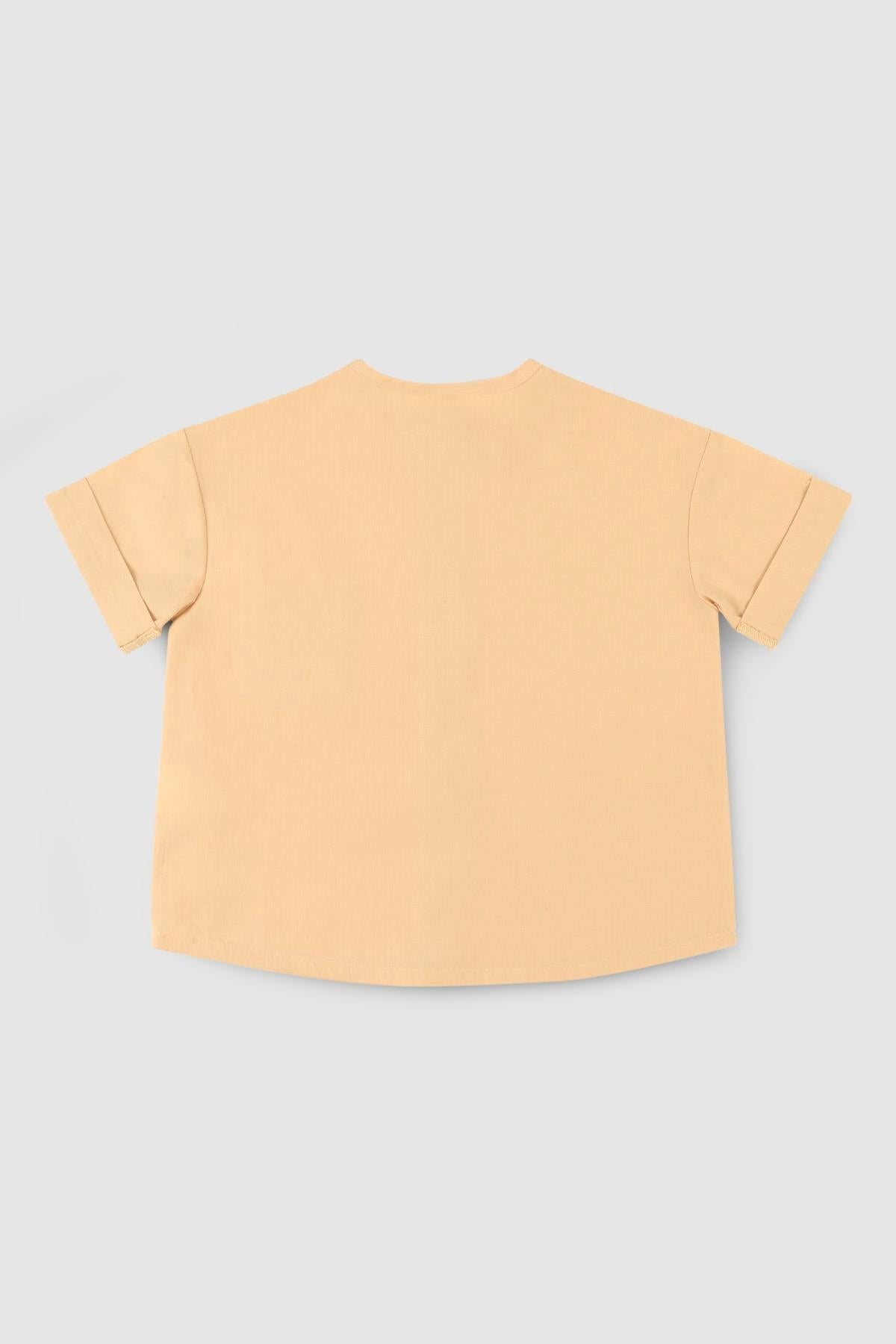 Organik Pamuk Kısa Kollu Çocuk Gömlek Sarı Organik Pamuk