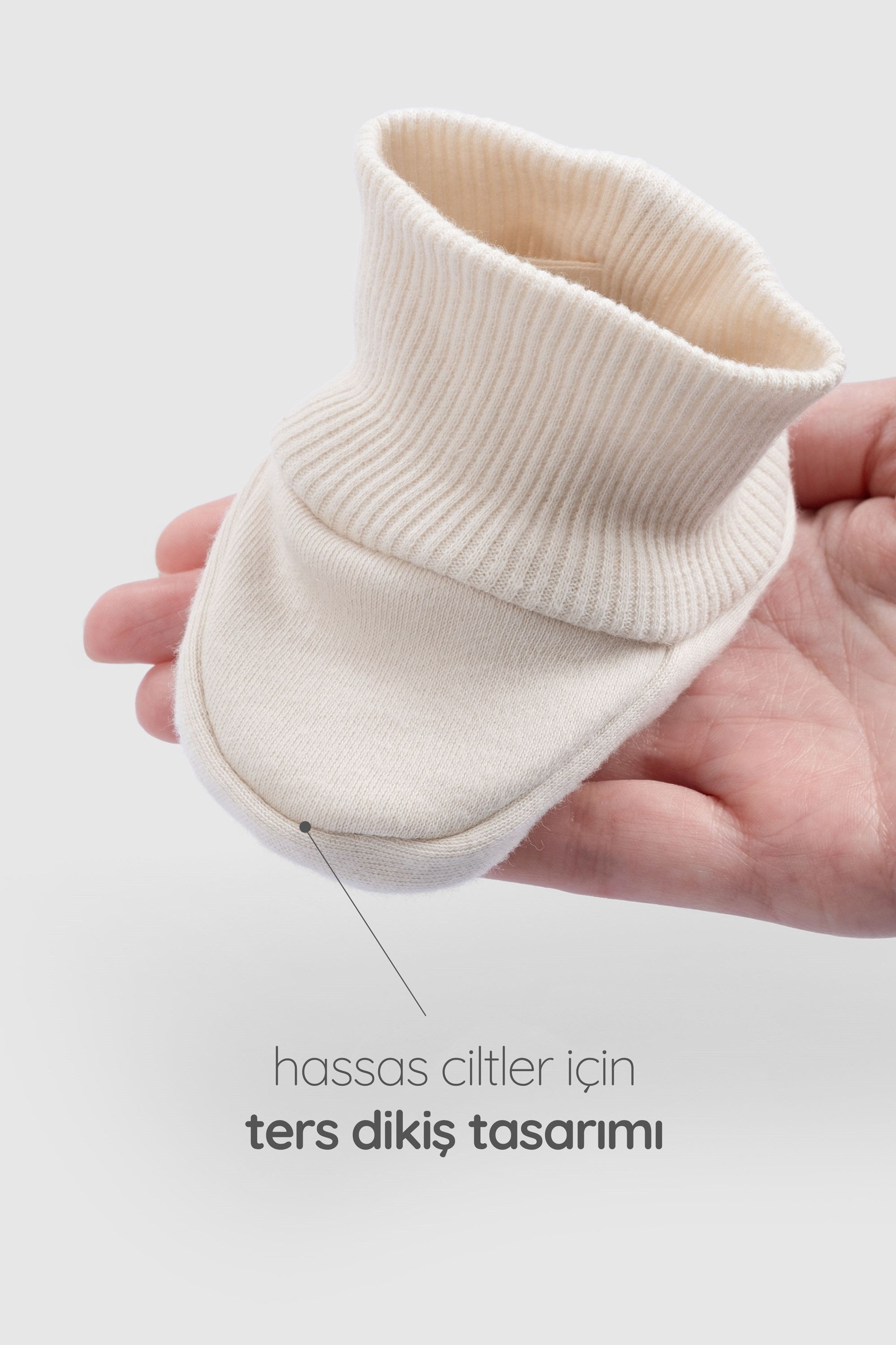 Ters Dikişli Organik Pamuk Ekru Prematüre Patik